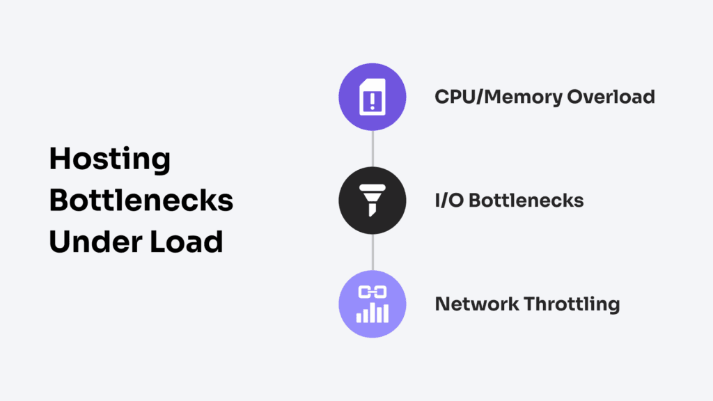 This failure mode exposes tier misalignment and resource provisioning gaps. It directly informs how hosting layers must be restructured to handle peak concurrency, not average load.