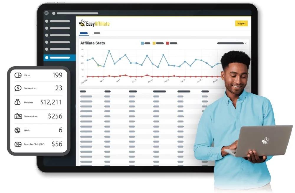 Using the Easy Affiliate WordPress plugin, WordPress blog owners can easily set up their self-hosted affiliate programs and multiply their sales by 30%. The plugin will be especially useful for projects that sell online courses, different types of products, memberships, etc. Although some people migh assume that starting an affiliate program is a time- and effort-consuming process, you can make things simpler with Easy Affiliate. It’s a beginner-friendly WordPress plugin that is easy to install and set up. Once installed, it adds a full affiliate program to your website. You can welcome your affiliate partners to log into their affiliate dashboard to monitor their success and progress.