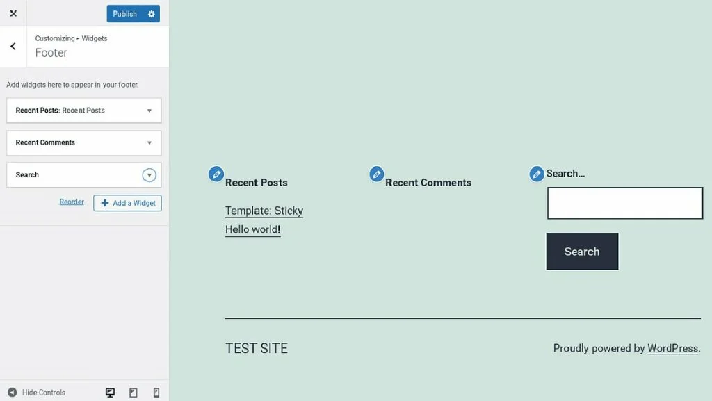 To add a custom WordPress search form using WordPress Customizer, you need to open your site’s dashboard and navigate Appearance > Customize. Select “widgets” in the Customizer sidebar. By doing so, you will open a new menu containing the entire list of widget areas that your website has and the widgets it features.