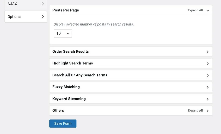 At the end of the custom WordPress search form customization, you can configure the search results page. It lets you manage the number of posts displayed on the search results page, manage whether you’d like to highlight search terms, adjust the order of search results, etc.
