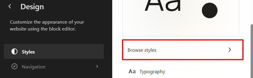 This is the place where you can control all aspects of the site’s design. The Styles icon opens options for typography, colors, layout, and block-level styles. It will also open up options for style variations and additional CSS. All changes made here will be site-wide unless specified otherwise for individual blocks and pages.