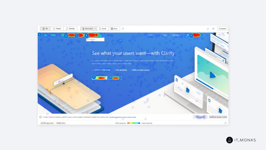 For WordPress websites, hover maps help determine whether interface elements are clear and compelling, or whether users hover because of uncertain labels or unclear affordances.