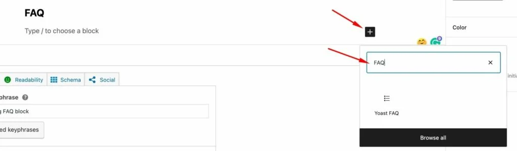 The easiest way to add a FAQ block to your Gutenberg-based WordPress block is by installing the Yoast SEO plugin.