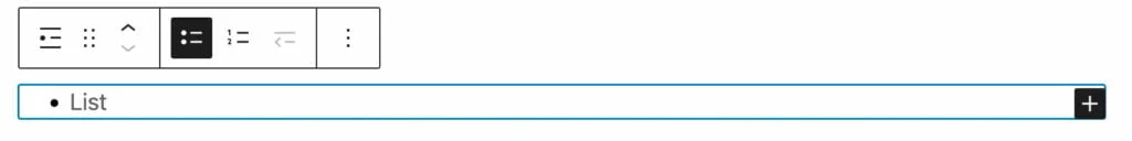 When you choose the List block, you can select either an unordered list (bullets) or an ordered list (numbers). The bullet’s style depends on the theme, with the default being a black circle. You can easily switch between the two types of lists as needed.