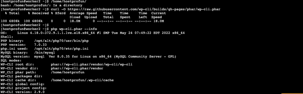 WP-CLI Installation uses the WordPress Command Line Interface to perform the full WordPress setup without relying on a browser or FTP client.