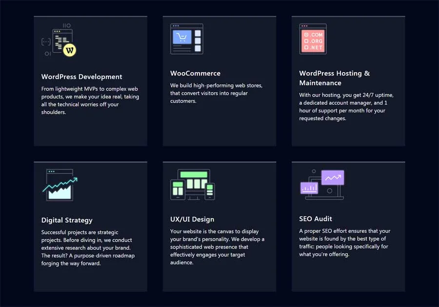 Like many other companies on this list, Valet offers both maintenance and support services for your WordPress site. The company’s staff has many years of experience delivering top-notch onsite security, uptime monitoring & backups, and WordPress updates.