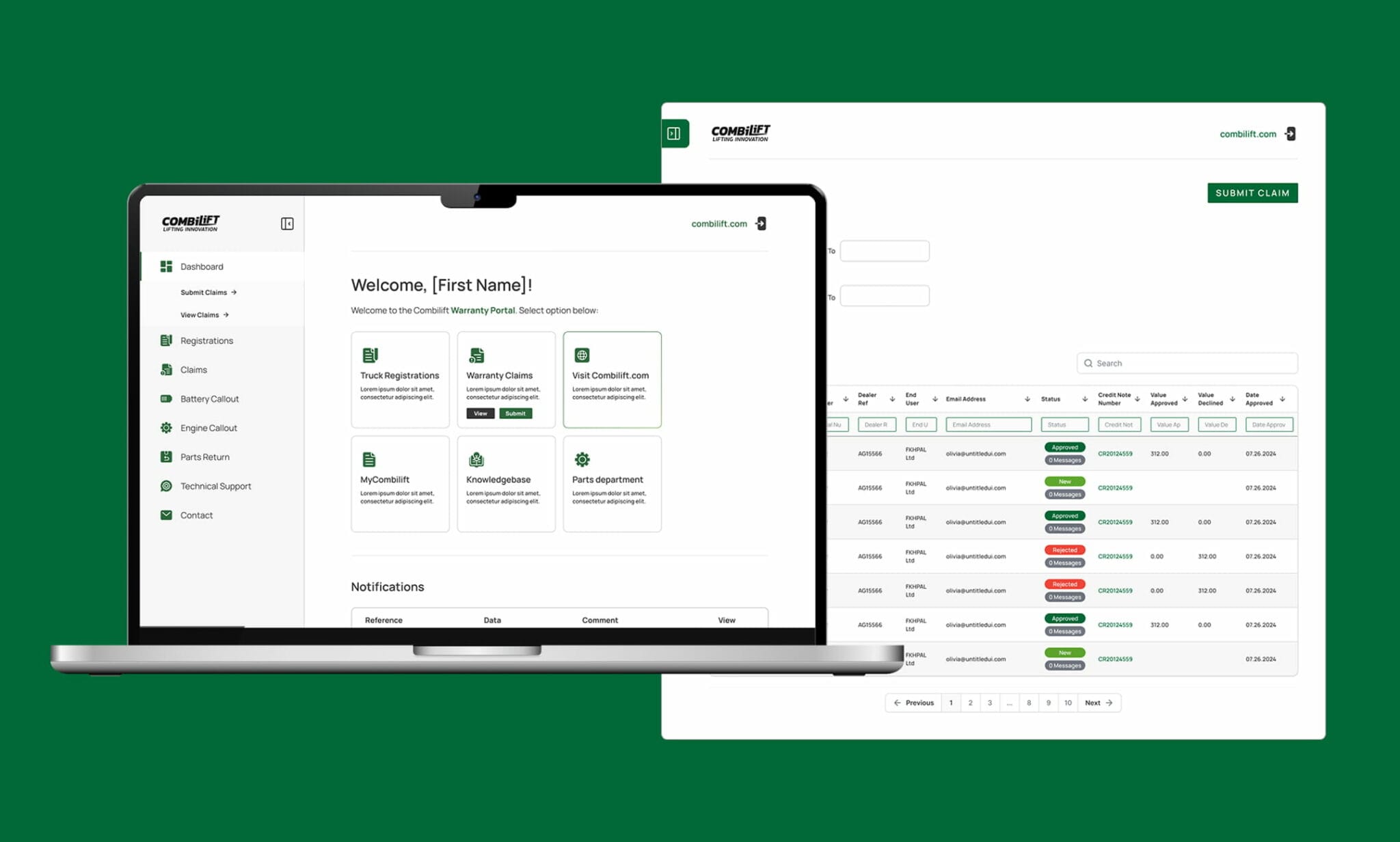 The redesigned Warranty Portal improved speed, usability, and operational efficiency for Combilift’s manufacturing and support teams. By integrating the external API with the portal and CRM system, the platform now provides instant access to warranty and claims data.