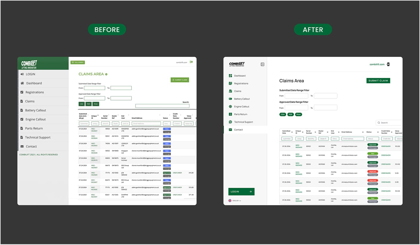 With 95,000+ forklifts delivered across 85 countries, Combilift supports a large and growing customer base. Their Warranty Portal, used by over 10,000 active users, required a major upgrade, introducing real-time API integration and a redesigned UX to match operational scale.